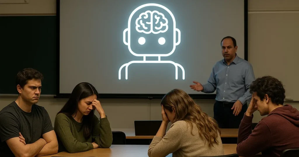 أحد الطلاب، ويدعى جيمس، أعرب عن استيائه الشديد، قائلاً إنه يشعر بأنه أضاع عامين من عمره في دورة تم إنشاؤها “بأرخص طريقة ممكنة”. وأشار إلى التناقض الصارخ بين سياسات الجامعة التي تحظر على الطلاب استخدام الذكاء الاصطناعي في واجباتهم الدراسية، وبين اعتمادها على هذه التقنية في إعداد المناهج التي يتعلمون منها.
