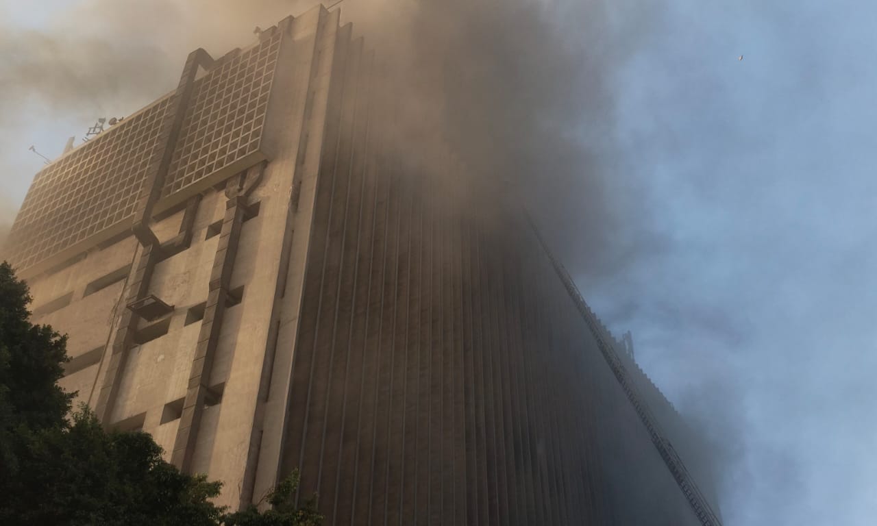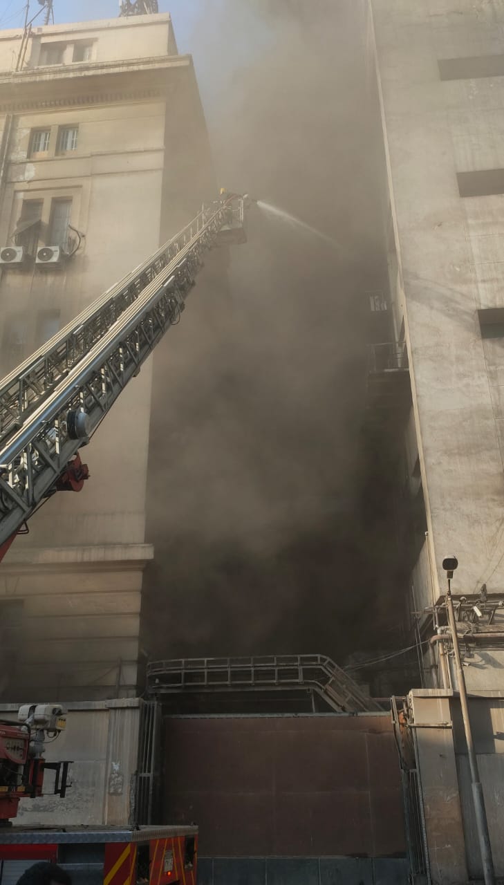 تحاول وحدات الحماية المدنية في القاهرة السيطرة على حريق سنترال رمسيس ومنع امتداده.