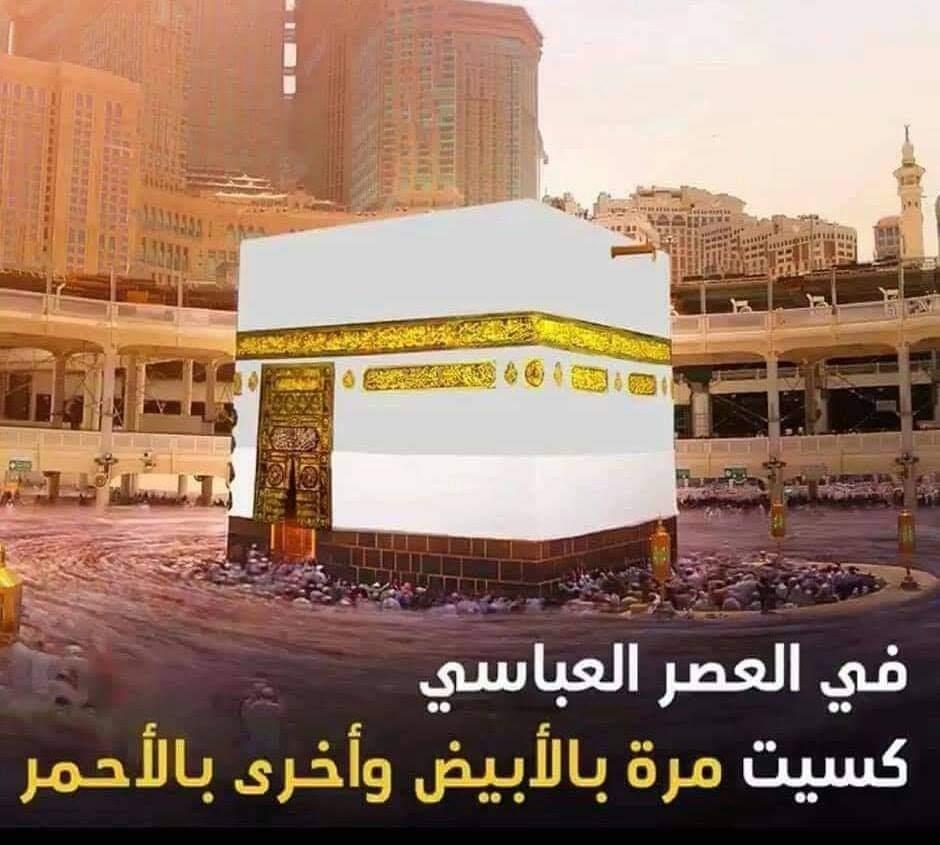وكُسيت الكعبة المشرفة أيضا باللون الأبيض في أيام الخلافة العباسية، كما قال الفاكهي “رأيت كسوة لهارون الرشيد من قباطي مصر أبيض رقيق مكتوب عليها بسم الله بركة من الله للخليفة الرشيد عبدالله هارون أمير المؤمنين”.