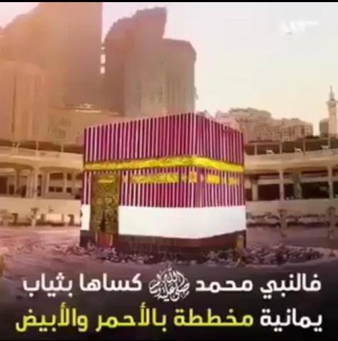 ألبس الرسول محمد صلي الله عليه وسلم الكعبة المشرفة بالثياب اليمانية المخططة بالأبيض والأحمر، بعد فتح مكة، وهو أول تغيير من بعد الكسوة التي وضعها آل قريش، بعد أن احترقت تلك الكسوة أثناء تبخير الكعبة.