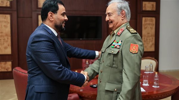 وقالت القيادة العامة للقوات المسلحة العربية الليبية، في بيان إن اللقاء تضمن مناقشة آخر المُستجدات المحلية، كما اطلع حفتر، على الخطوات التنفيذية لصندوق إعمار درنة والمناطق المتضررة بالجبل الأخضر.
