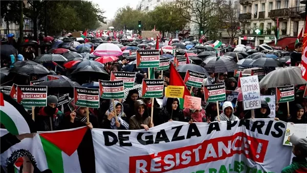 وفي باريس، انطلق موكب يضم آلاف المتظاهرين تحت المطر وراء لافتة كتب عليها “أوقفوا المجزرة في غزة والضفة الغربية، وقف إطلاق نار فوري” حسبما ذكرت وكالة فرانس برس.