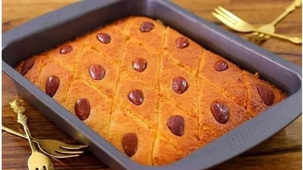 تترك البسبوسة حتي تبرد ثم تقطع وتقدم.