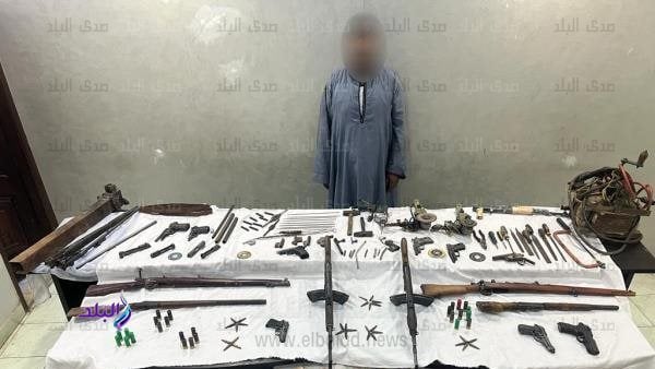 عقب تقنين الإجراءات تم ضبطه حال تواجده بالشقة المستأجرة وبحوزته (4 بنادق آلية – 2 بندقية خرطوش – 3 طبنجات – 15 فرد محلى – عدد من الطلقات النارية – أجزاء أسلحة مختلفة – أدوات لتصنيع وتصليح الأسلحة النارية).