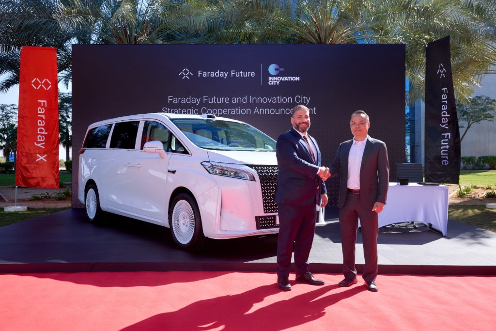 وعقب مراسم التوقيع، نظّمت الشركة حفل تسليم مشترك، جرى خلاله تسليم مركبة FX Super One إلى مدينة رأس الخيمة للابتكار، في ثاني عملية تسليم لهذا الطراز داخل دولة الإمارات العربية المتحدة. ويُشار إلى أن أول مستخدم لمركبة FX Super One في الدولة كان أسطورة كرة القدم العالمية أندريس إنييستا.