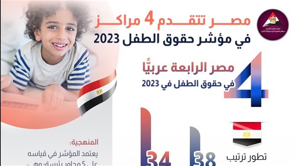 أوضح الانفوجراف ان ترتيب مصر تقدم 4 مراكز في مؤشر حقوق الطفل الصادر عن مؤسسة “kidsrights” في عام 2023، حيث حصلت على المركز الـ 34 من بين 193 دولة، مقارنة بالمركز 38 من بين 185 دولة في عام 2022.