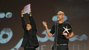 طفل المستعمرة في لحظة مؤثرة بعد فوز الفيلم بجائزة نجمة الجونة البرونزية