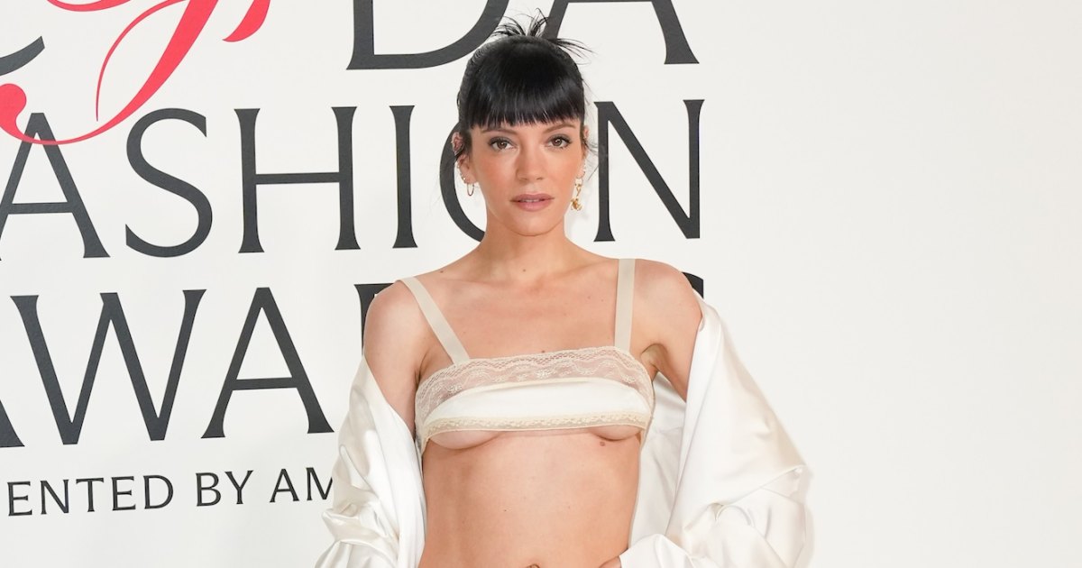 وصلت المغنية البريطانية إلى الحدث وهي ترتدي زيًا مكشوفًا للجلد كولين ألين، الذي تم ترشيحه كمصمم ناشئ لهذا العام. إن ملابس ليلي البيضاء بالكامل والمستوحاة من الملابس الداخلية – تنورة طويلة وحمالة صدر مكشوفة – جعلت البيان رائعًا. خلعت بلوزة تصل إلى الأرض لالتقاط الصور، وكشفت عن قماش الدانتيل الشفاف الموجود على الجزء الخلفي من التنورة والذي أظهر ساقيها.