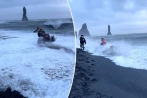 كادت مجموعة من السائحين “المغرورين” أن يجرفهم البحر أثناء محاولتهم التقاط صورة لقضاء إجازة على أخطر شاطئ في أيسلندا. شق…