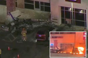 تحطمت طائرة في ساحة انتظار السيارات بمركز تسوق في تكساس يوم الثلاثاء، على بعد أمتار قليلة من الباب الأمامي لمطعم…