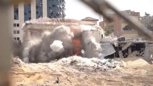 عرضت قناة القاهرة الإخبارية، مقطع فيديو عبر شاشتها لأحد جنود الاحتلال الإسرائيلي اثناء إلقاءه قنبلة في إحدى المساجد بمدينة رام…