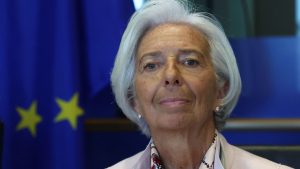 رئيسة البنك المركزي الأوروبي كريستين لاجارد تنظر أثناء حضورها لجنة الشؤون الاقتصادية والنقدية بالبرلمان الأوروبي في البرلمان الأوروبي في بروكسل…