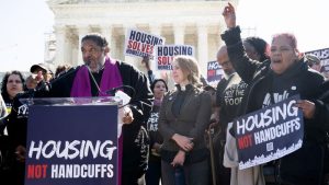 تصارعت المحكمة العليا يوم الاثنين لأكثر من ساعتين ونصف مع مسألة ما إذا كان إصدار مخالفات للمشردين يعد عقوبة “قاسية…