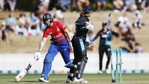 “انهارت إنجلترا لهزيمة ثلاث أشواط في T20 الثالثة لها أمام نيوزيلندا في ساكستون فيلد في نيلسون، تاركة الجولة معلقة في…