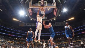 “سجل أنتوني ديفيس إحصائيات لم يسبق لها مثيل في الدوري الاميركي للمحترفين لإلهام لوس أنجلوس ليكرز للفوز 120-109 على مينيسوتا…