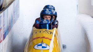 “فاز فريق يوهانس لوشنر المكون من أربعة رجال في الزلاجة الجماعية بذهبية كأس العالم في سانت موريتز في زمن قياسي،…