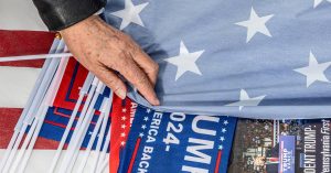ميسا ، أريزونا – كانت مجموعة من أعضاء أمريكا أولاً ، والجمهوريون الجامعيون ، وقس قومي مسيحي يوزعون البرغر والهوت…