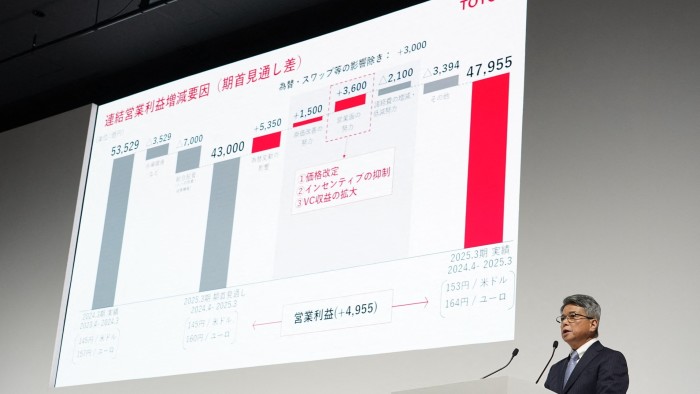 خلال عامها المنتهي في مارس 2026 ، قال أكبر صانع سيارات في العالم من قبل المركبات التي تم بيعها إنها تتوقع ربحًا تشغيليًا قدره 3.8 مليون يوان (26 مليار دولار) مقارنة بـ 4.8 تون في العام. يتضمن التنبؤ “مبدئيًا” تأثير تعريفة أمريكية تقدر بـ 180 مليار ين لشهور أبريل ومايو.
