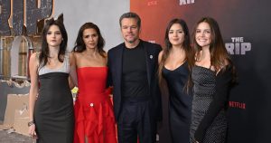 مايكل دامون يتعرض للسخرية من ابنته جيا بسبب وقفته المحرجة على سجادة (The Rip) الحمراء.