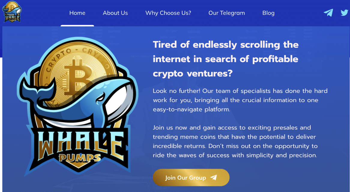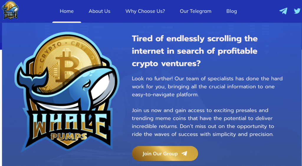 موقع مضخات الحوت المشفرة: https://cryptowhalepumps.com/