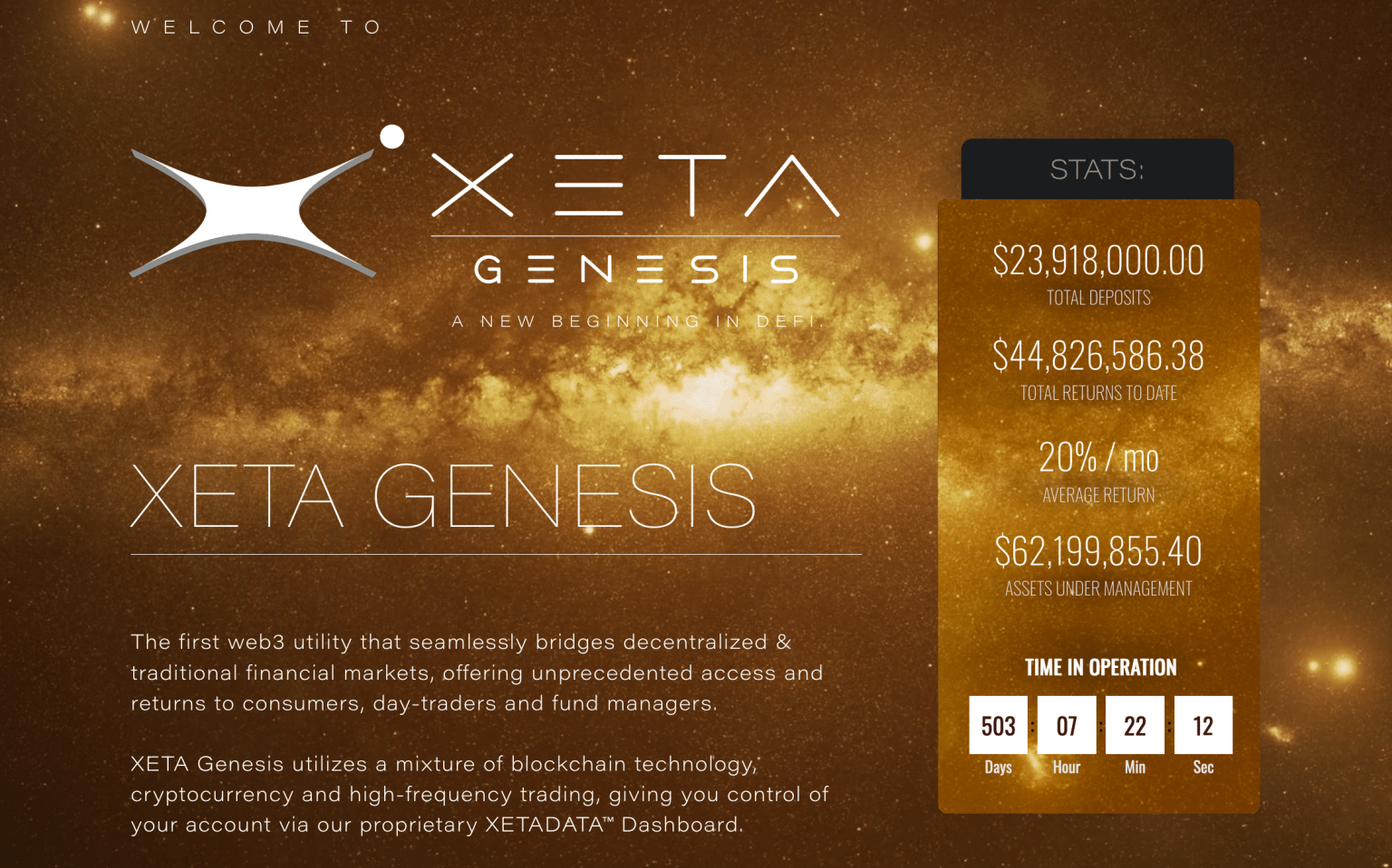 XETA Genesis هي أول أداة مساعدة Web3 تربط بين TradFi وDeFi بسلاسة، مما يوفر الوصول إلى العائدات لعملائها من خلال مزج blockchain والعملات المشفرة والتداول عالي التردد.