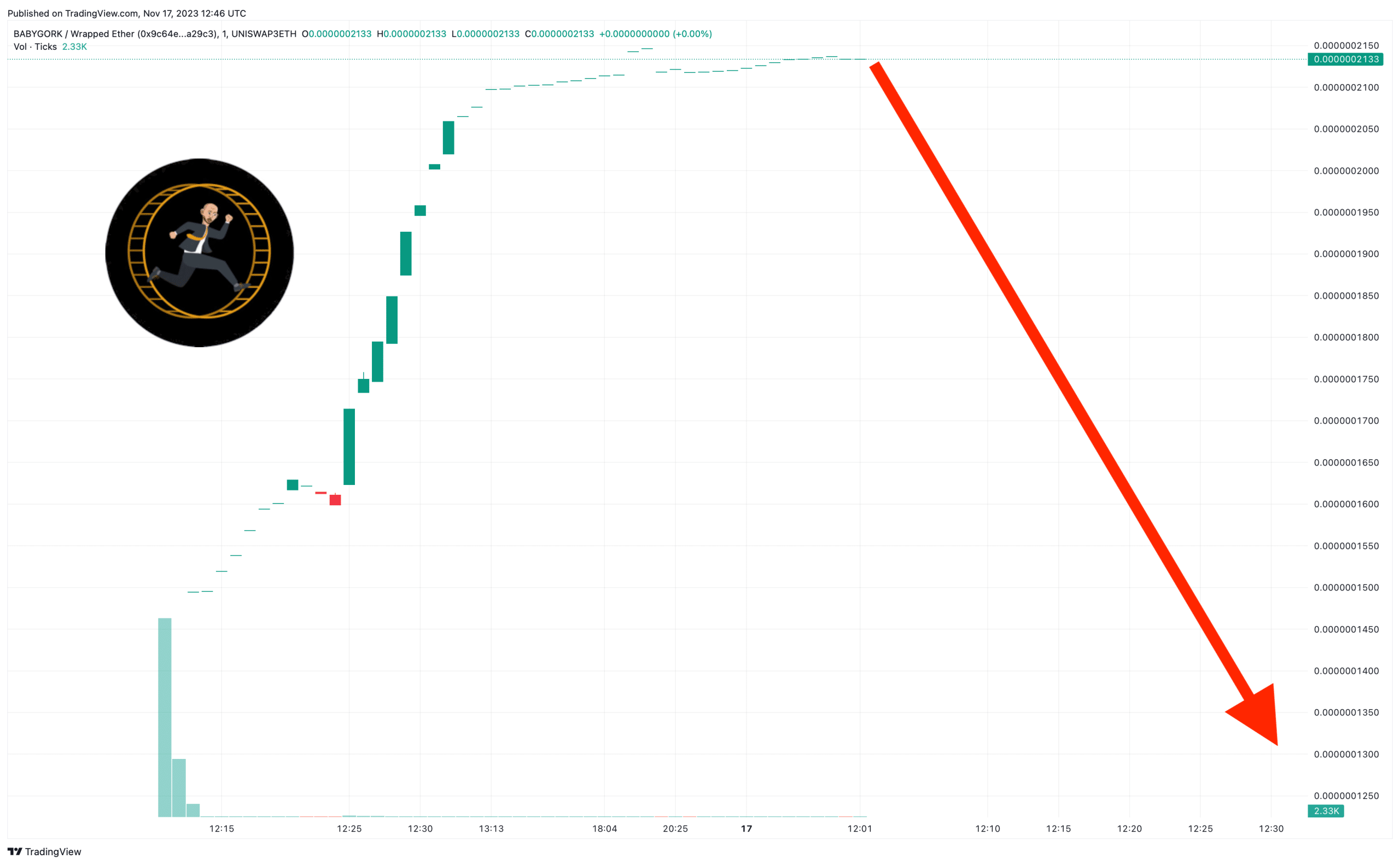 ارتفع رمز الميم الجديد BABYGORK بنسبة 176% خلال الـ 24 ساعة الماضية، مع ارتفاعه إلى 0.0004192 دولار، محققًا مكاسب بنسبة 10000% تقريبًا منذ إدراجه في Uniswap أمس.