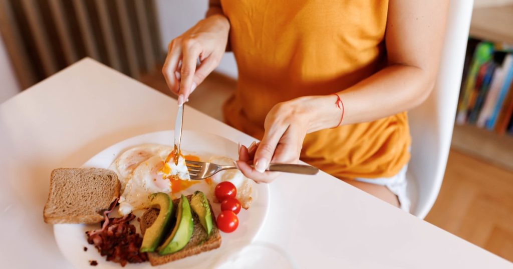 يقول شميدت إن خيارات الإفطار الغنية بالبروتين قد تشمل البيض واللحوم الخالية من الدهون والزبادي اليوناني والحليب المصفى للغاية وزبدة الجوز ومخفوق البروتين. ويضيف شميدت: “من الجيد تمامًا تناول الكربوهيدرات في وجبة الإفطار، ولكن عندما يكون لديك مصدر بروتين مع الكربوهيدرات، فإن ارتفاع الجلوكوز لن يكون مرتفعًا”.