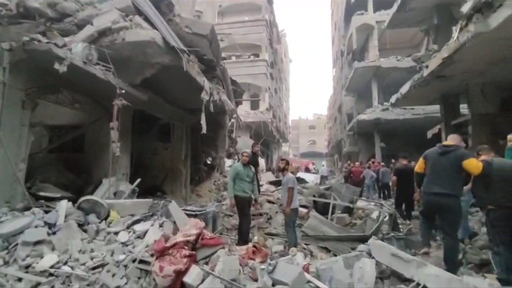 أظهرت مشاهد مصورة صباح اليوم الأحد آثار القصف الإسرائيلي العنيف على مربع سكني في منطقة تل الزعتر شمالي قطاع غزة، والذي تعرضت له خلال الساعات الماضية، مما أدى إلى استشهاد وإصابة العشرات، فيما تجري عمليات البحث تحت الأنقاض عن آخرين.