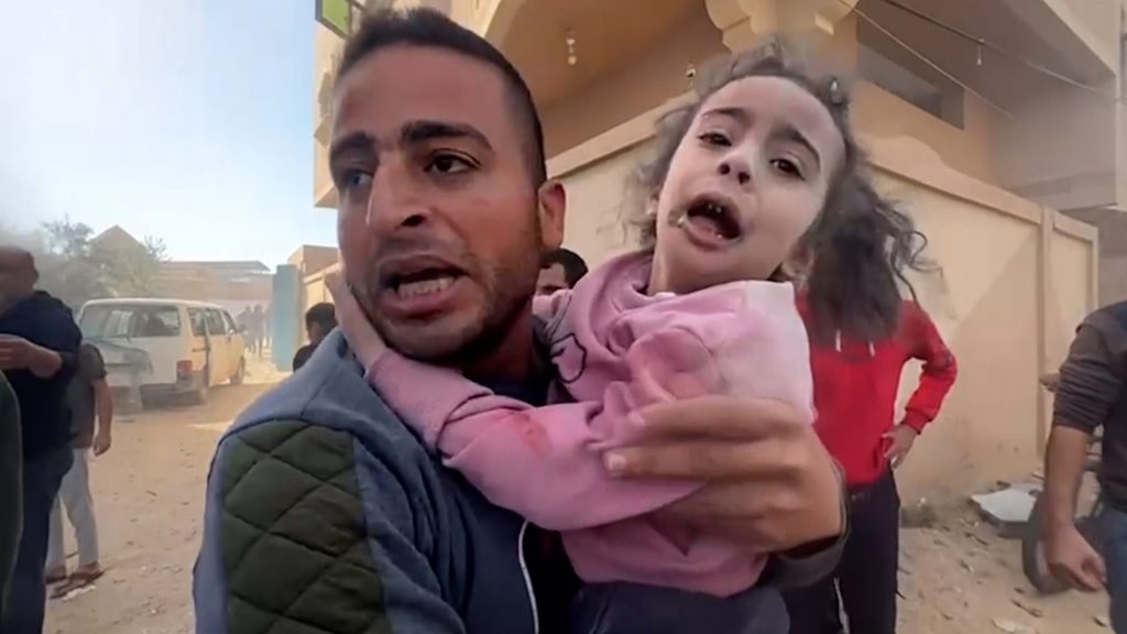 تمكن مواطنون من إنقاذ طفلة من تحت الأنقاض عقب غارة إسرائيلية استهدفت منزلا شرق رفح جنوبي قطاع غزة وأسفرت عن سقوط شهداء وجرحى. وأظهرت مشاهد بثتها قناة الجزيرة مواطنين وهم يحاولون إخراج جرحى..