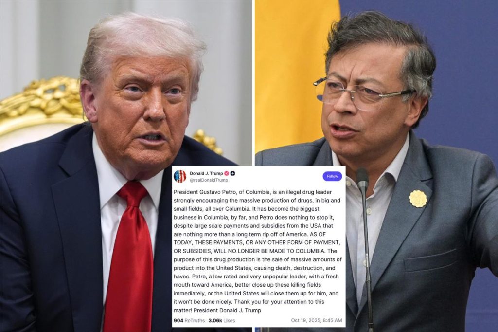 وقال ترامب عبر موقع Truth Social: “الرئيس غوستافو بيترو، من كولومبيا، هو زعيم مخدرات غير قانوني يشجع بقوة الإنتاج الضخم للمخدرات، في الحقول الكبيرة والصغيرة، في جميع أنحاء كولومبيا”.