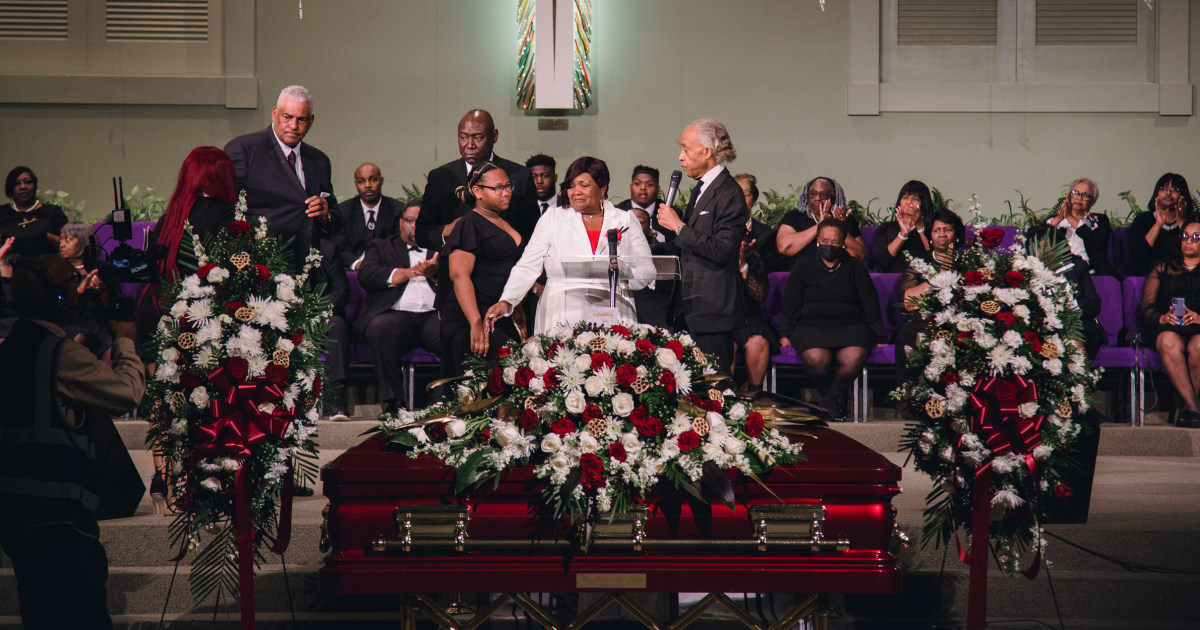 وقد وصل قادة الحقوق المدنية من جميع أنحاء البلاد لحضور القداس يوم الاثنين. وجد العديد من المسؤولين المنتخبين، بما في ذلك عضو في الكونغرس، مقاعد في جمهور الكنيسة إلى جانب أفراد الأسرة المكلومين. غنت جوقة الإنجيل تأمل في أيام أفضل قادمة، محاطة على خشبة المسرح بـ 15 باقة من الزهور المزخرفة، بما في ذلك واحدة على شكل الأحرف الأولى من اسم الرجل الذي أثار موته العنيف ودفنه السري صرخة وطنية: “DW”.
