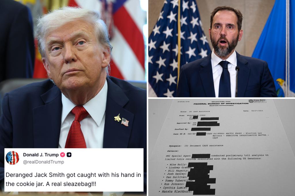مزق الرئيس ترامب جاك سميث باعتباره “عبارة عن” سليزباج حقيقي “بعد الوحي المذهل الذي حصل مكتب التحقيقات الفيدرالي على سجلات هاتفية لثمانية من أعضاء مجلس الشيوخ الجمهوريين تحت مراقبة المستشار الخاص السابق.