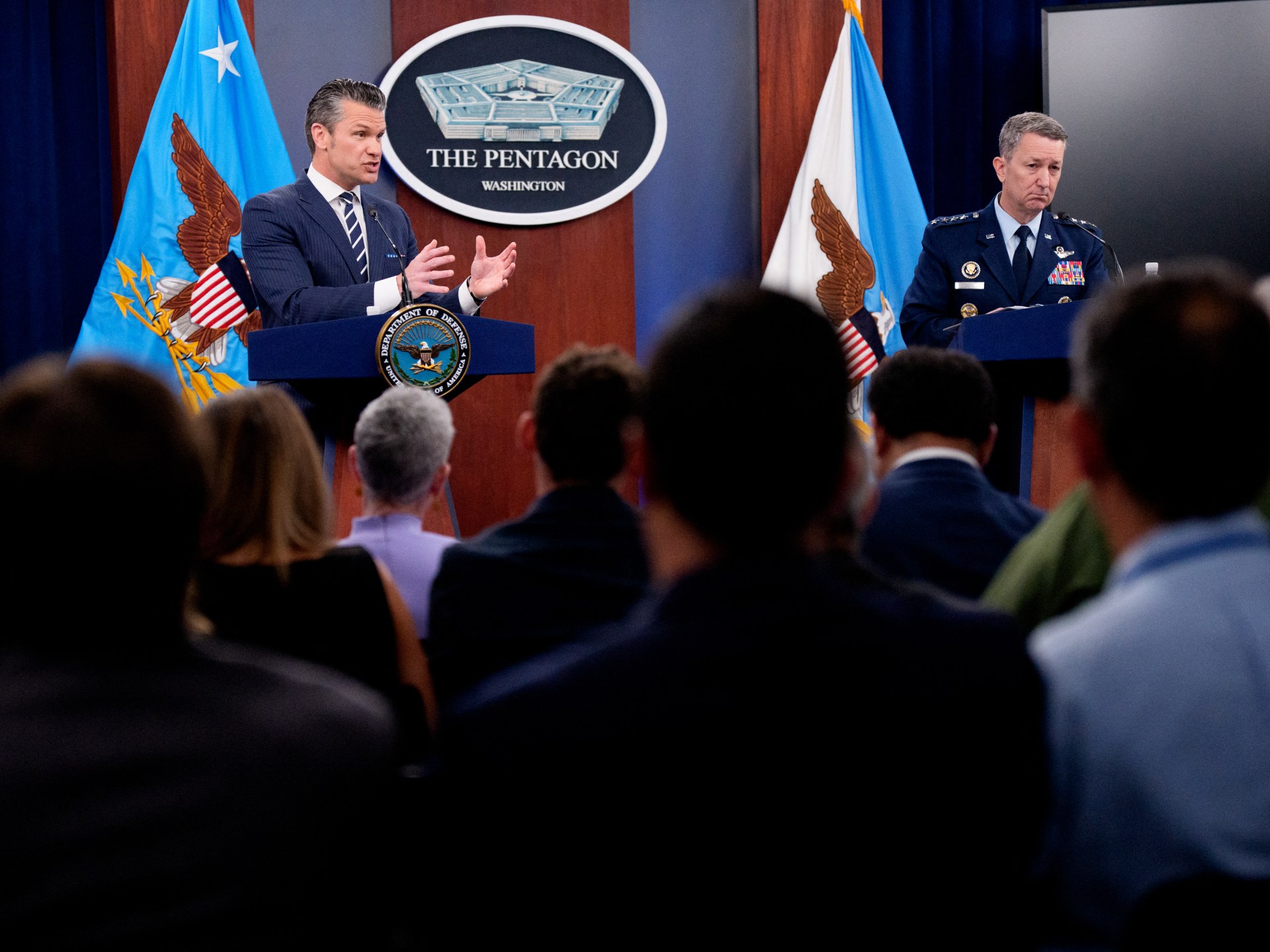 وذكر هيغسيث -في إيجاز صحفي قدمه مع رئيس هيئة الأركان بمقر وزارة الدفاع (البنتاغون)- أن الرئيس الأميركي دونالد ترامب كان “ملتزما بعملية السلام، وأراد نتيجة تفاوضية، وأعطى إيران كل فرصة لكنه قوبل بالرفض”.