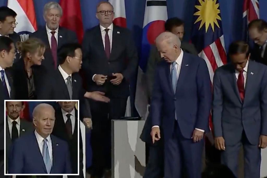 بدا الرئيس بايدن مرتبكًا عندما اعتلى المسرح مع زعماء العالم الآخرين في قمة أبيك يوم الخميس – بعد أن أخطأ في تسمية المكان ورفض ذكر شركة أمريكية خوفًا من الخطأ في نطقها.