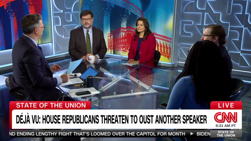 المعلق السياسي لشبكة سي إن إن جونا غولدبرغ، والمعلق السياسي لشبكة سي إن إن آشلي أليسون، ورئيسة التجمع من ذوي الأصول الأسبانية النائبة نانيت باراغان، والخبير الاستراتيجي للحزب الجمهوري براد تود، ينضمون إلى جيك تابر من سي إن إن لمناقشة آخر فوضى الحزب الجمهوري في مجلس النواب، بالإضافة إلى المشاكل القانونية المتزايدة التي يواجهها دونالد ترامب.