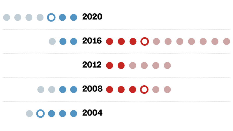معظم المرشحين الذين يقرأون ما هو مكتوب على الحائط ينسحبون بعد ولايتي أيوا أو نيو هامبشاير، أو على الأقل في وقت مبكر بما يكفي لتجنب الإحراج الناتج عن خسارة الوطن. وهذا ما فعلته السيناتور إيمي كلوبوشار في عام 2020، حيث علقت حملتها قبل أيام من وارن وقبل أن تخسر الانتخابات التمهيدية في ولايتها مينيسوتا.