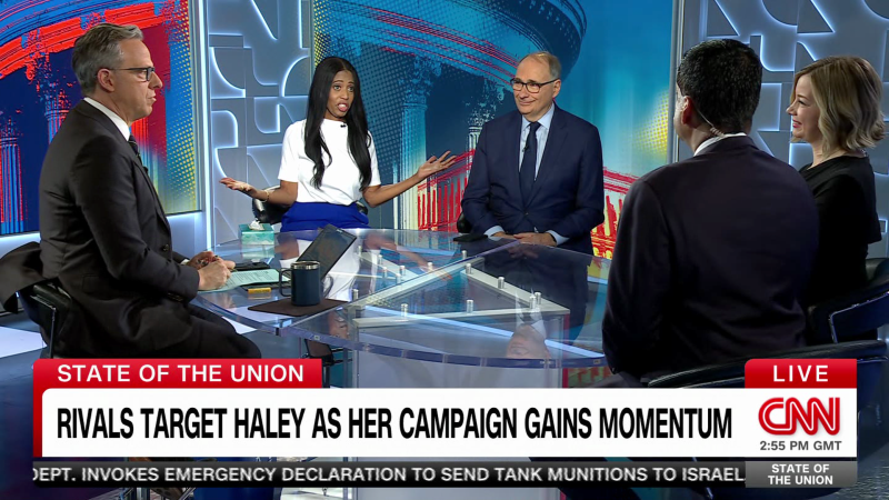 في برنامج حالة الاتحاد على قناة CNN مع جيك تابر، يناقش كبير المعلقين السياسيين في CNN ديفيد أكسلرود، والمعلقين السياسيين في CNN ميا لوف وكريستين سولتيس أندرسون، والنائب الديمقراطي رو خانا، ملاحظة دونالد ترامب بأنه لن يكون إلا ديكتاتورًا “في اليوم الأول”. بالإضافة إلى معركة نيكي هالي الشاقة لمواجهة دونالد ترامب في الانتخابات التمهيدية للحزب الجمهوري.