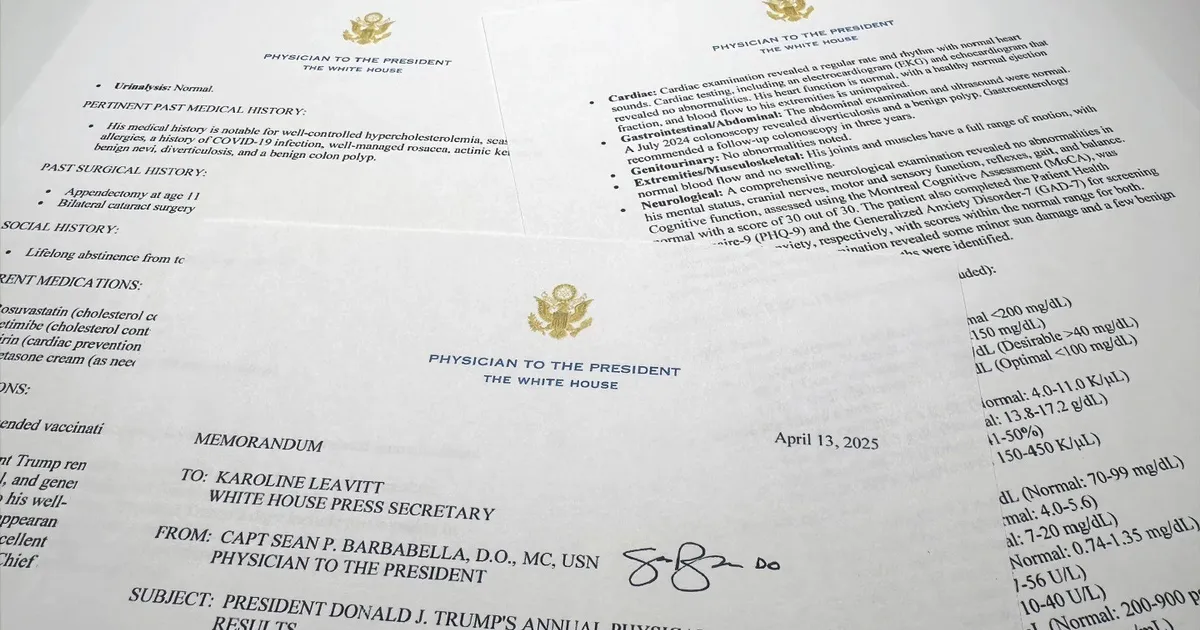 وفقاً لطبيب الرئيس، الكابتن شون باربابيلا، فإن الفحص أجري خلال زيارة لمركز والتر ريد للقاء العاملين به، وكان يهدف إلى “ضمان استمرار تمتعه بصحة مثالية”. وأضاف باربابيلا أن الفحص كشف عن نتائج “طبيعية تماماً” ولم يظهر أي شذوذ.