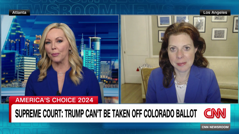 أبطل حكم المحكمة العليا الأمريكية يوم الاثنين قرار كولورادو باستبعاد دونالد ترامب من الانتخابات التمهيدية الرئاسية للحزب الجمهوري. تسأل روزماري تشيرش من CNN أستاذة القانون بجامعة لويولا جيسيكا ليفينسون عن القرار.