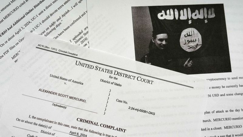 اعتقل مكتب التحقيقات الفيدرالي ميركوريو يوم السبت – قبل يوم من إعلان السلطات أنه خطط لمهاجمة كنيسة في كور داليني بولاية أيداهو، باستخدام “أسلحة مغطاة باللهب، ومتفجرات، وسكاكين، ومنجل، وأنبوب، وفي النهاية أسلحة نارية”.