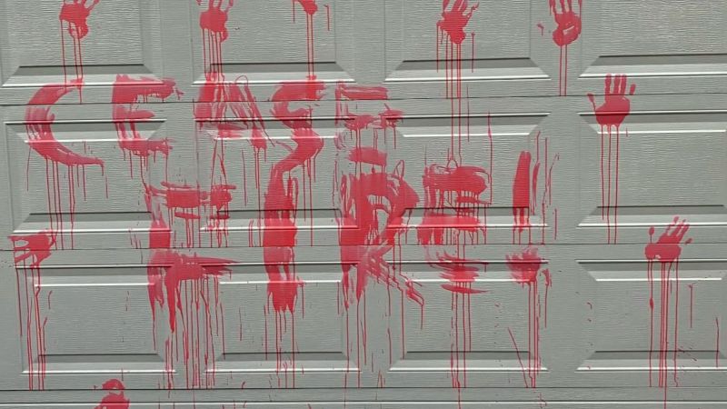وقال سيث تايلر، ضابط الإعلام العام في قسم شرطة بلفيو، لشبكة CNN في وقت سابق من يوم الجمعة، إن باب المرآب الخاص بمنزل سميث قد تم رشه بالطلاء طوال الليل., لكنه رفض نقل ما كتب.
