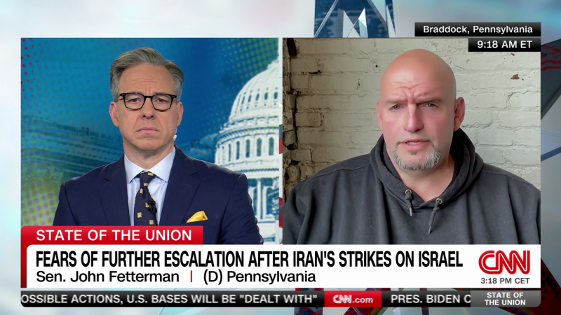 قال السيناتور الديمقراطي جون فيترمان لمراسل سي إن إن، جيك تابر، إن الرئيس بايدن لا ينبغي أن “يستسلم إلى الهامش” في حزبه عندما يتعلق الأمر بإسرائيل.