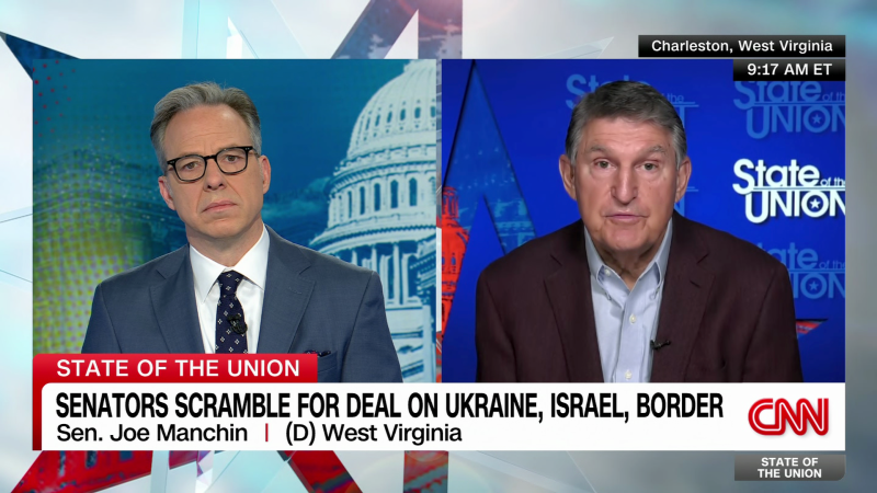 قال السيناتور الديمقراطي جو مانشين لمراسل سي إن إن، جيك تابر، إن مفاوضي مجلس الشيوخ “يتحركون بطريقة إيجابية للغاية” بشأن صفقة محتملة لتعزيز الحدود الجنوبية وتقديم الدعم لإسرائيل وأوكرانيا.