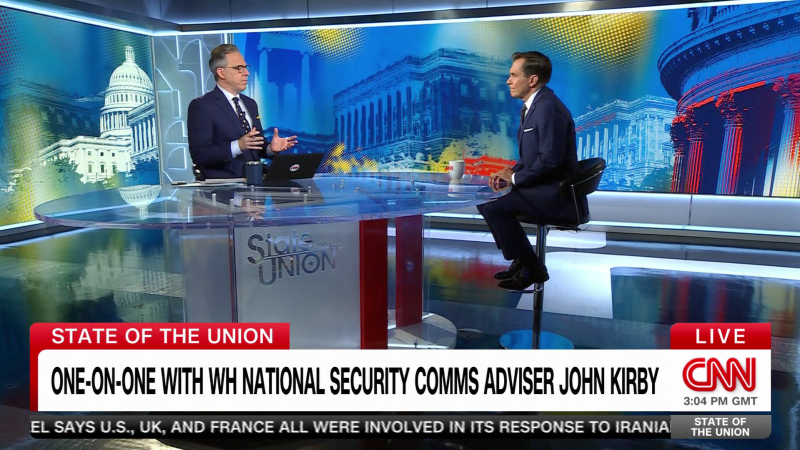 قال مستشار اتصالات الأمن القومي بالبيت الأبيض، جون كيربي، لمراسل شبكة CNN، جيك تابر، إن هجوم إيران على إسرائيل “كان حقًا غير مسبوق”، لكنه قال إن البيت الأبيض لا يعتقد أن هذا هو بداية حرب أوسع نطاقًا في المنطقة، “ولا نعتقد أنه يتعين عليه القيام بذلك”. يكون.”