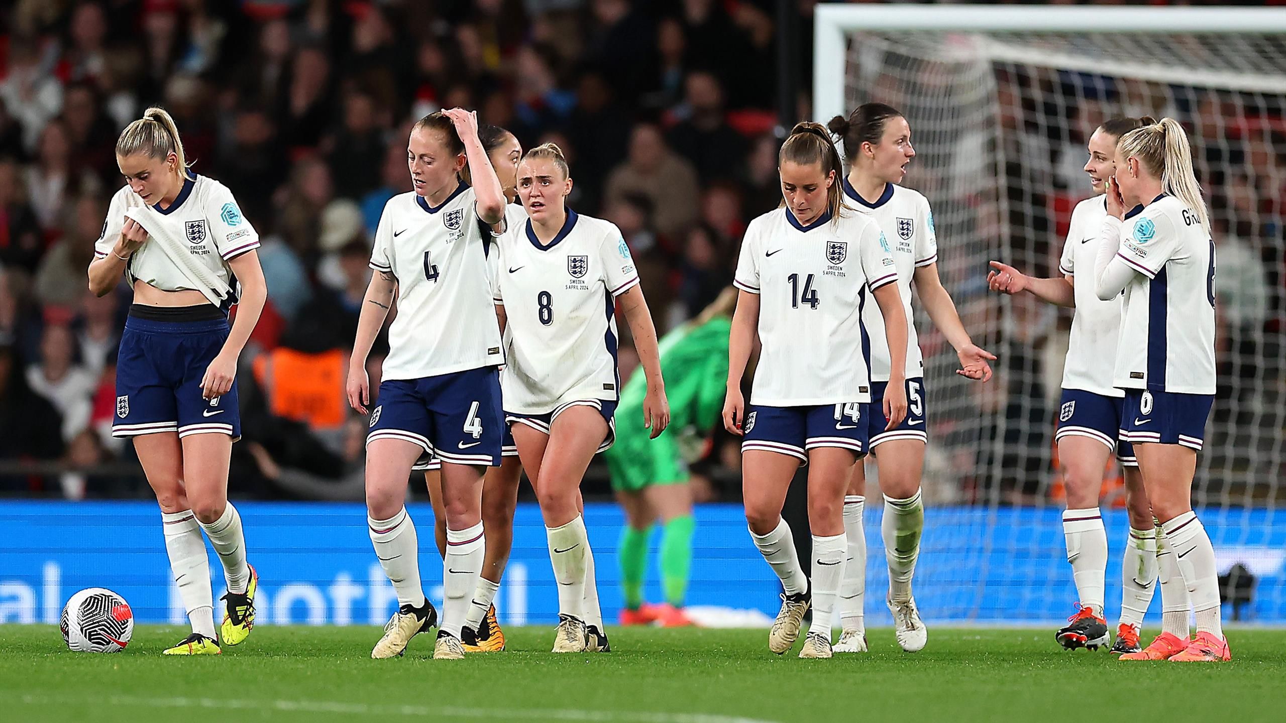 تعادلت إنجلترا في مباراتها الافتتاحية في تصفيات بطولة أمم أوروبا 2025 ضد السويد على ملعب ويمبلي. ومنحت أليسيا روسو التقدم لللبؤات في الشوط الأول بضربة رأس متقنة، لكن تم إلغاء تقدم أصحاب الأرض في الشوط الثاني. “بفضل فريدولينا رولفو، أهدرت كل من ستينا بلاكستينيوس ولورين هيمب فرصًا جيدة للحصول على النقاط الثلاث لبلديهما.”