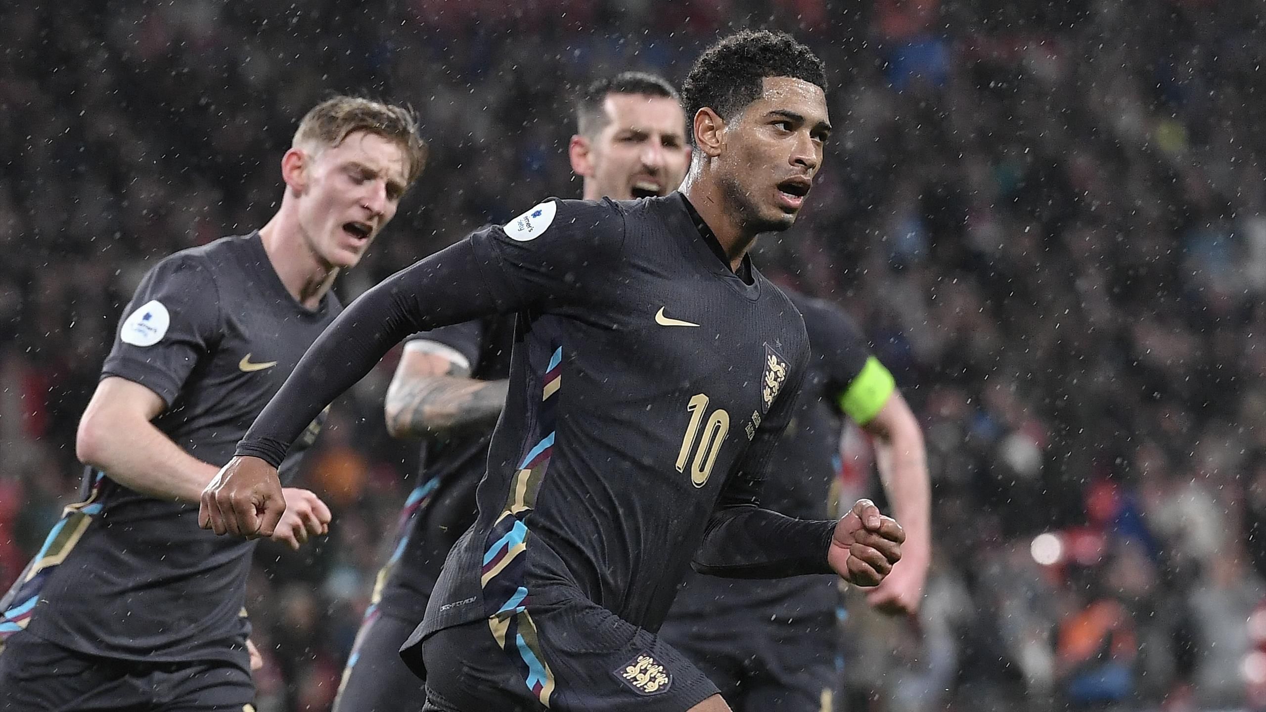 إنكلترا: بيكفورد 5، كونسا 6، ستونز لا يوجد، دونك 5، تشيلويل 5، ماينو 7، رايس 6 بيلينجهام 8، بوين 7، فودين 6، توني 8