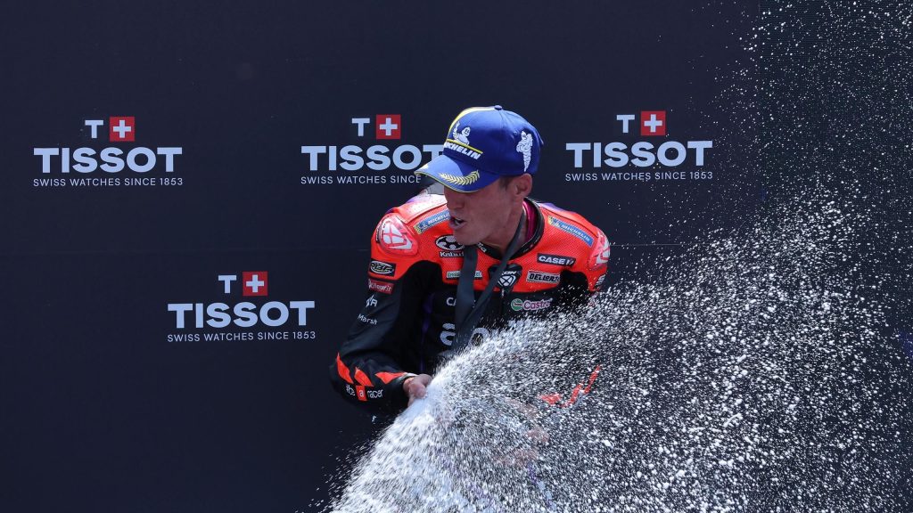 “لكنني سعيد جدًا بالفوز بمنصة التتويج مرة أخرى، وأنا سعيد جدًا بصعود منصة التتويج مع فريقي، وأنا سعيد جدًا بالتقدم الذي تم إحرازه في Mattighofen وفي فريق GASGAS.”