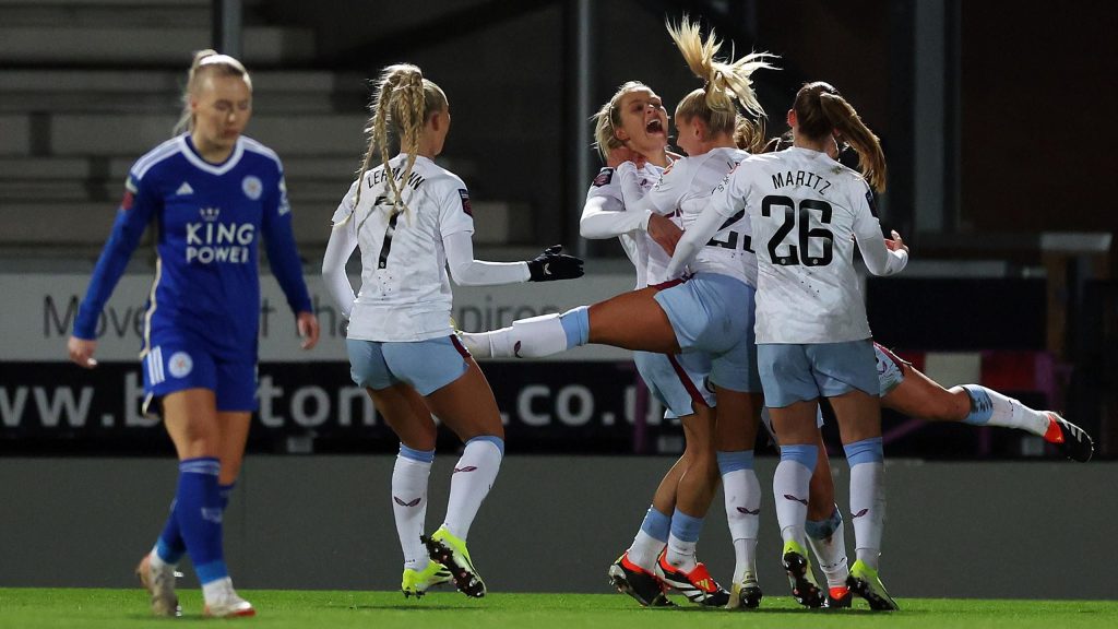 “سجلت راشيل دالي هدفها الخامس في حملة الدوري الممتاز للسيدات لتمنح أستون فيلا فوزًا ثمينًا 1-0 على ليستر سيتي على ملعب بيريللي في بيرتون. ارتقى فريق كارلا وارد من المركز التاسع إلى السابع في دوري WSL الجدول، فوق منافسيهم، حيث لم يحقق فريق ويلي كيرك الآن أي فوز في تسع مباريات، بينما حقق فيلانز بقيادة كارلا وارد أربعة انتصارات من ستة.