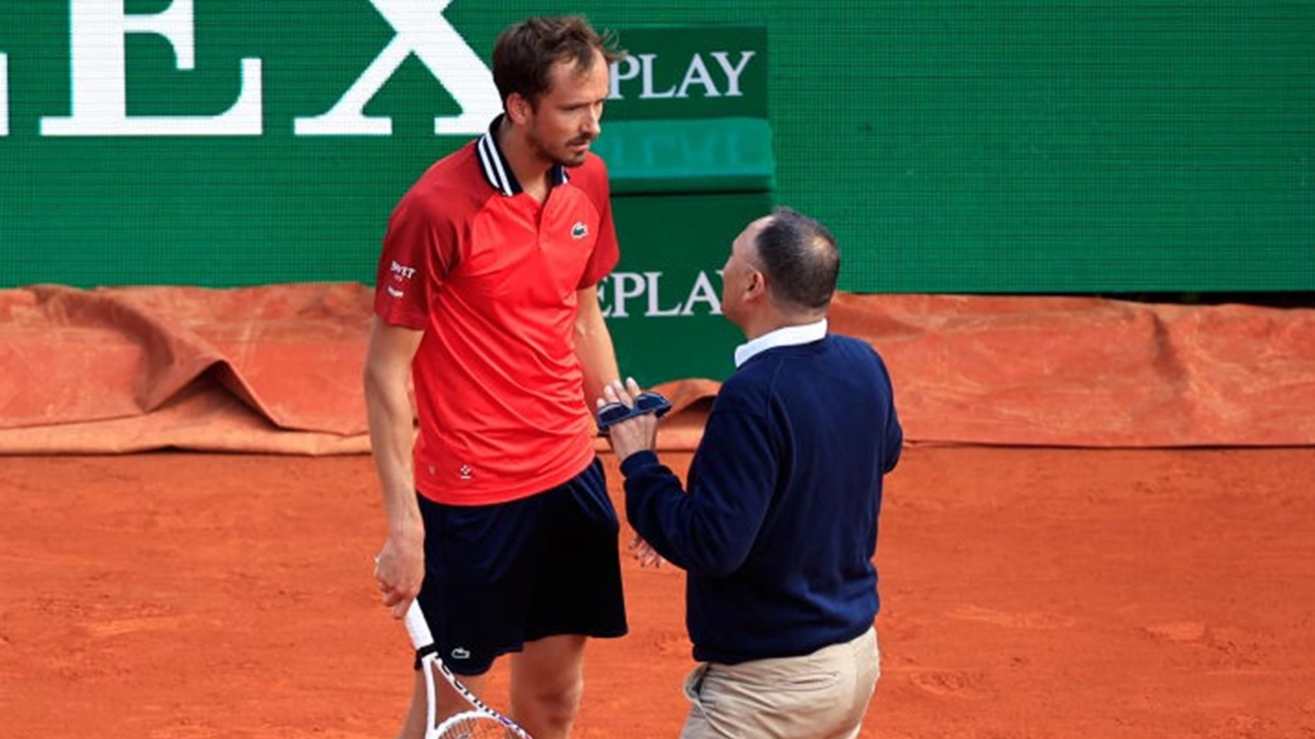 وكان ميدفيديف متقدما بنتيجة 6-2 و1-2 عندما انزعج من مكالمات خطية على خط الأساس الخاص به وهو الأمر الذي اختلف معه.