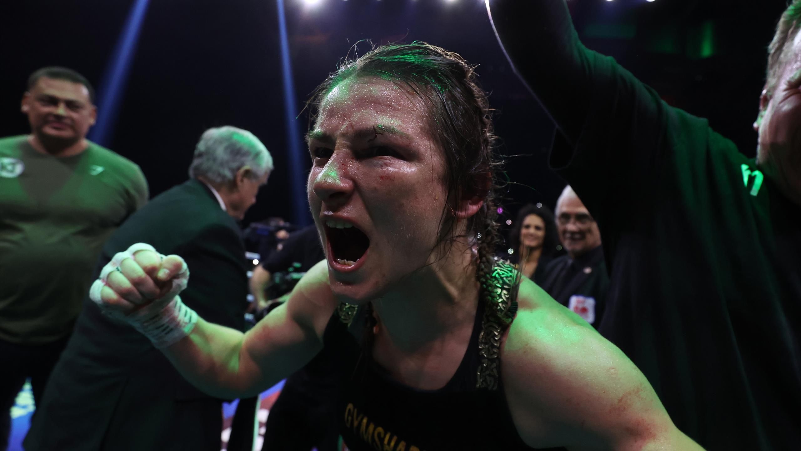“تريد كاتي تايلور ثلاثية مع شانتيل كاميرون بعد أن خرجت منتصرة أمام جمهور منزلها في دبلن ليلة السبت. وقد ألحق كاميرون أول خسارة مهنية بتايلور في مايو من هذا العام، وعلى الرغم من أنها بدأت المعركة باعتبارها المستضعفة، إلا أن تايلور كانت “فائز مبرر في المرة الثانية. سجلها حكمان 98-92 و96-94 لصالح تايلور بينما جعلها حكم ثالث التعادل 95-95.”